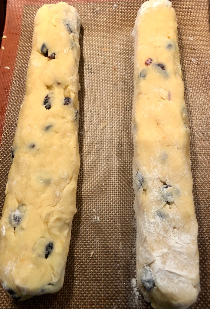 Let cool for 10 minutes and cut your cookies 1.5cm (1/2 inch) wide and bake for another 20 minutes. Remove from the oven and turn the cookies over and bake for yet, another 20 minutes. Well worth the time !