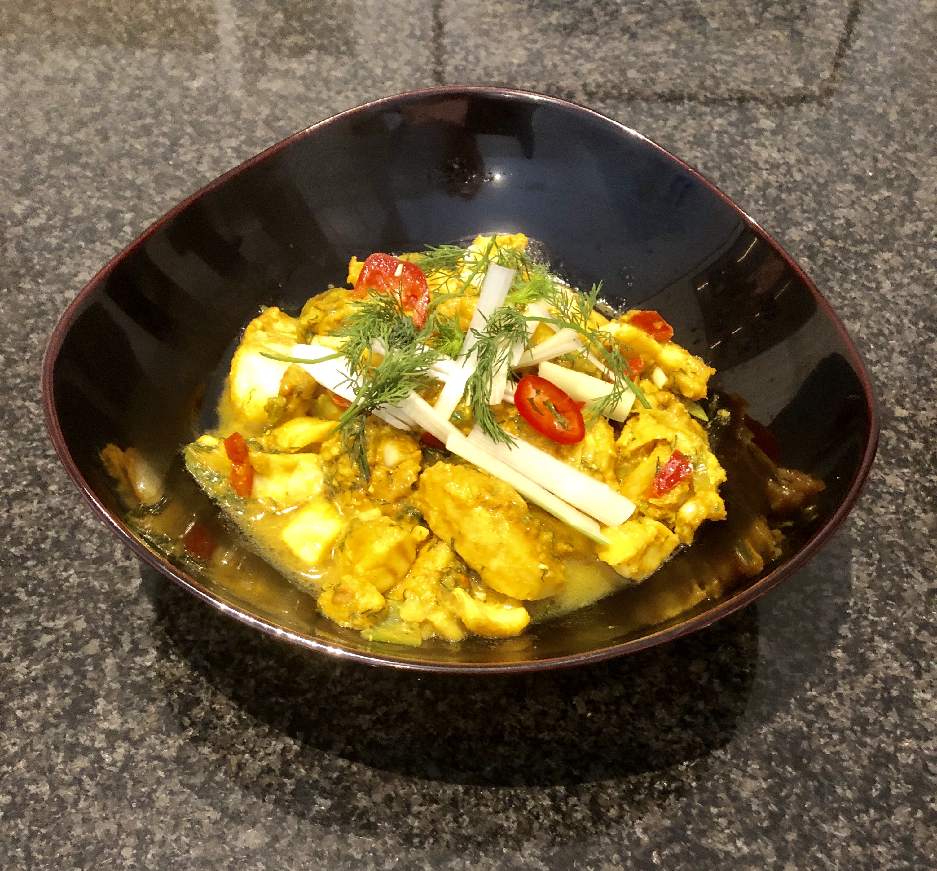 and mix with 2 tablespoon of Vegetable oil. Mix in the fish cubes and let it marinate for 30 minutes.