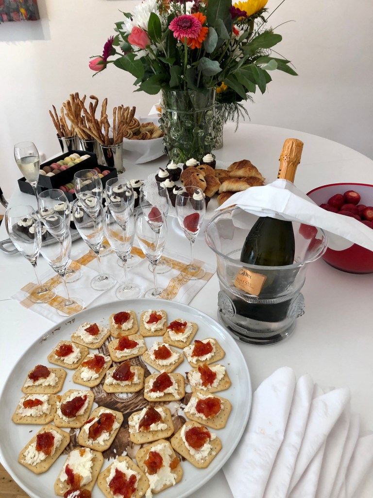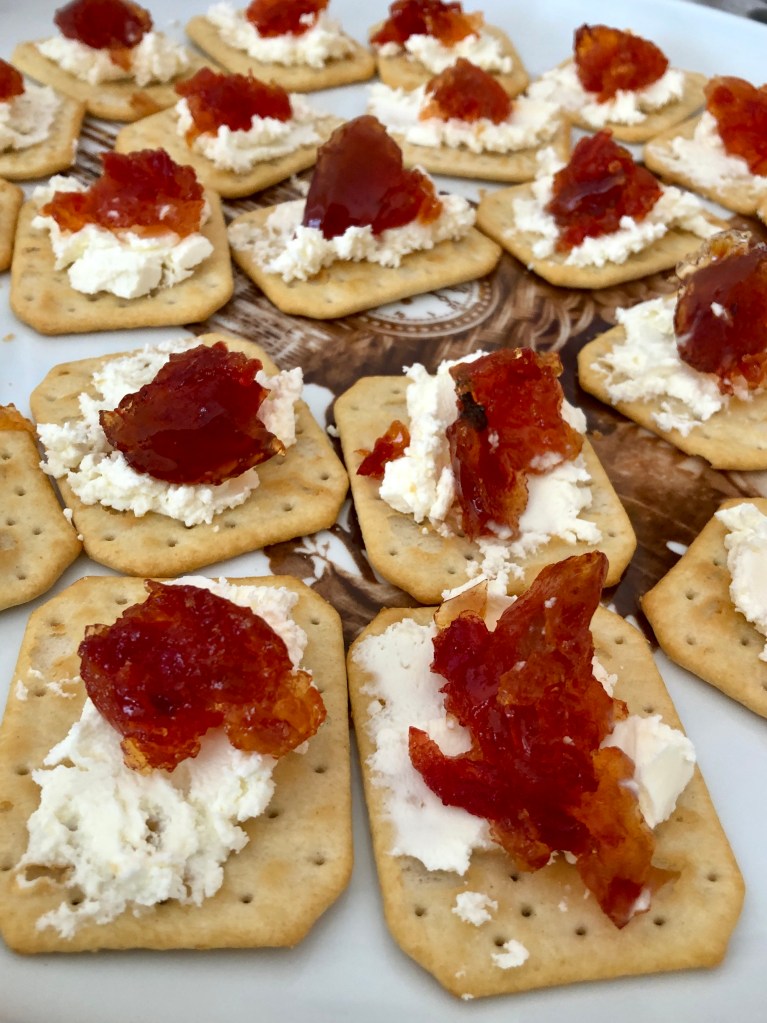 Simply use water crackers with a smear of cream cheese and pour a small dollop of the jelly – Addictive !