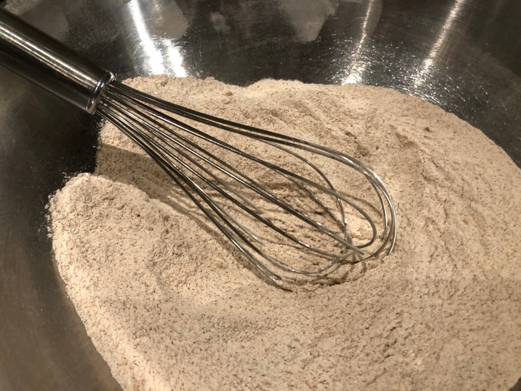 Sift the flour, baking powder, sugar, salt and spices in a mixing bowl. Make a well in the center and pour all the liquid ingredients; honey, milk and slightly beaten eggs. Using a whisk, mix very slowly and avoiding making lumps.