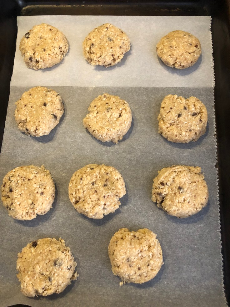 Using an ice cream spoon make small balls and spread them about 3-4 cm between each one, as they spread during baking.