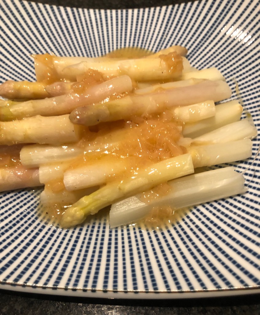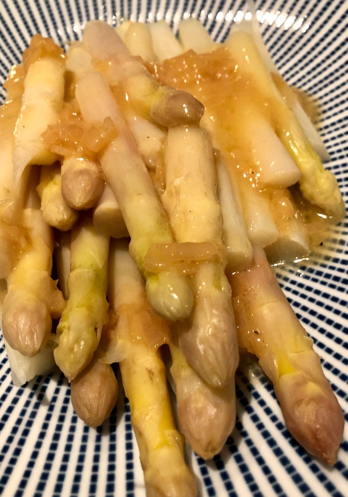 Simply steamed, served with a beurre blanc sauce or Hollandaise sauce is the best way to enjoy them. In Germany, they are often served with steamed potatoes and a slice of ham. Served with a glass of Gruner Vertliner… a wonderful lunch idea.