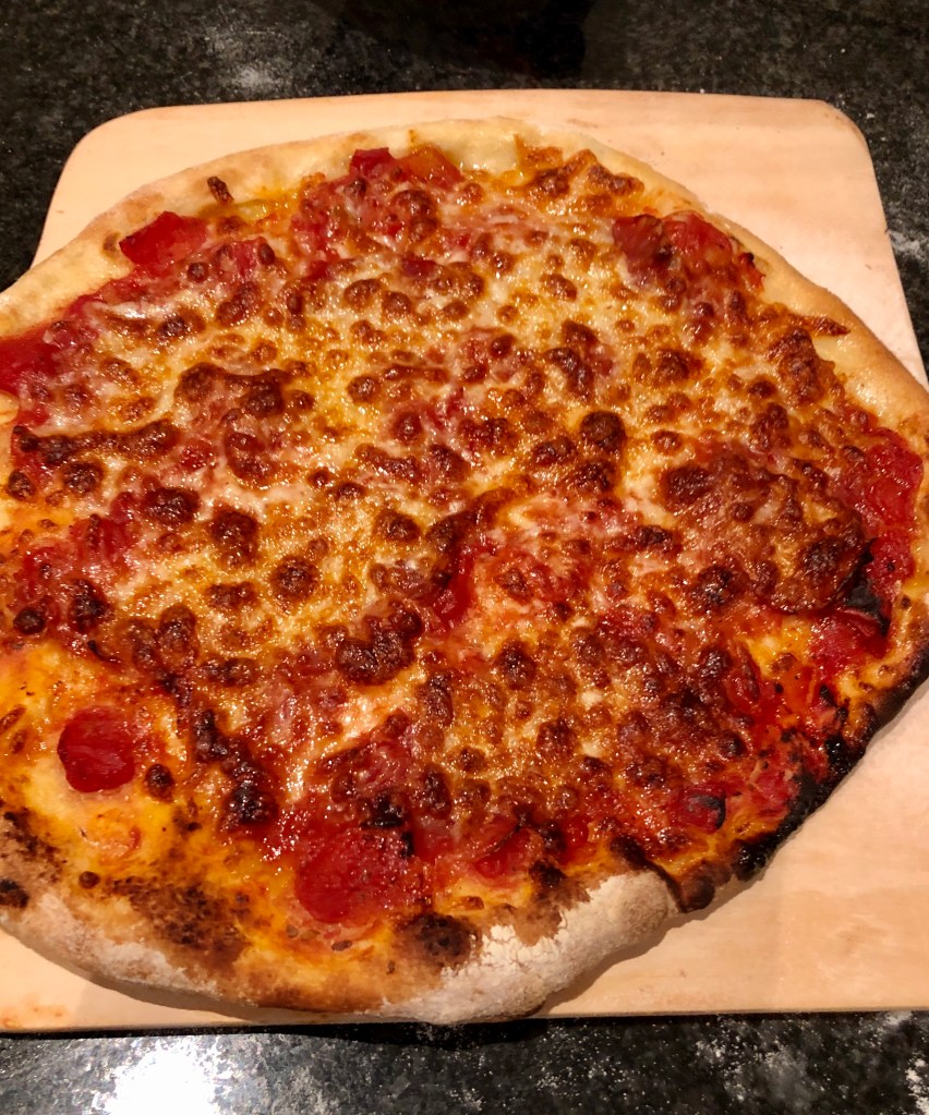 When it is time to bake the pizza, place your pizza stone in the oven and pre-heat at 275 Celsius.