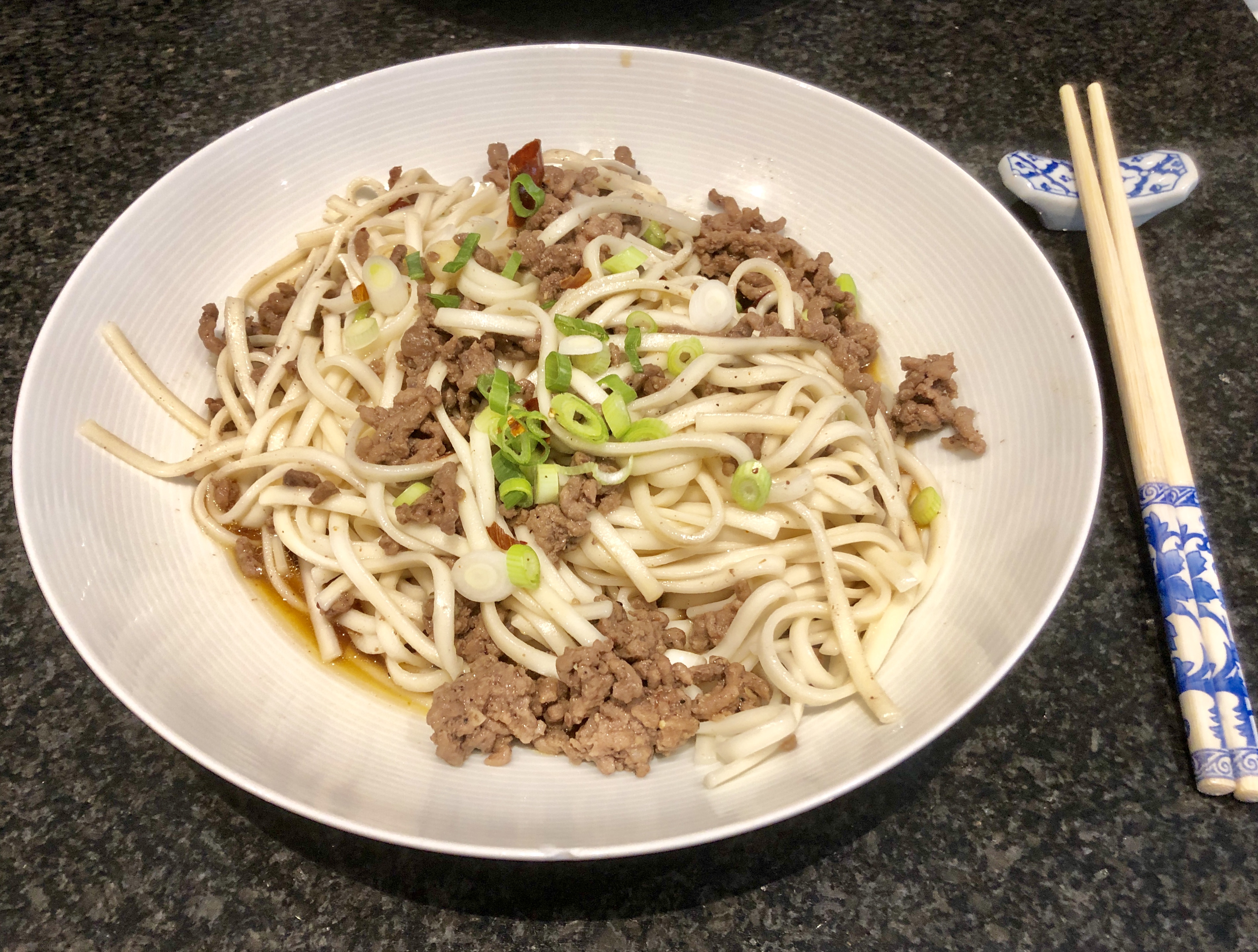 Top the noodles with the pork mixture and with spring onions. You can also add some cilantro.