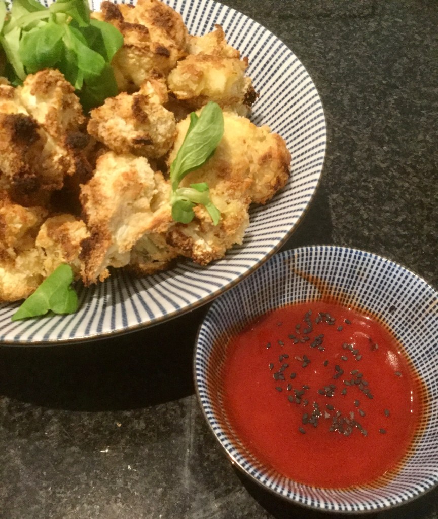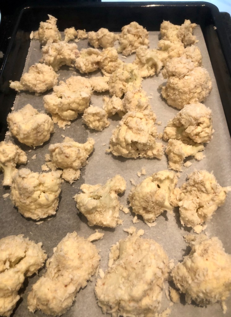 Drizzle with a little olive oil and place in the oven for 20-25 minutes, until the cauliflower florets start to brown.
