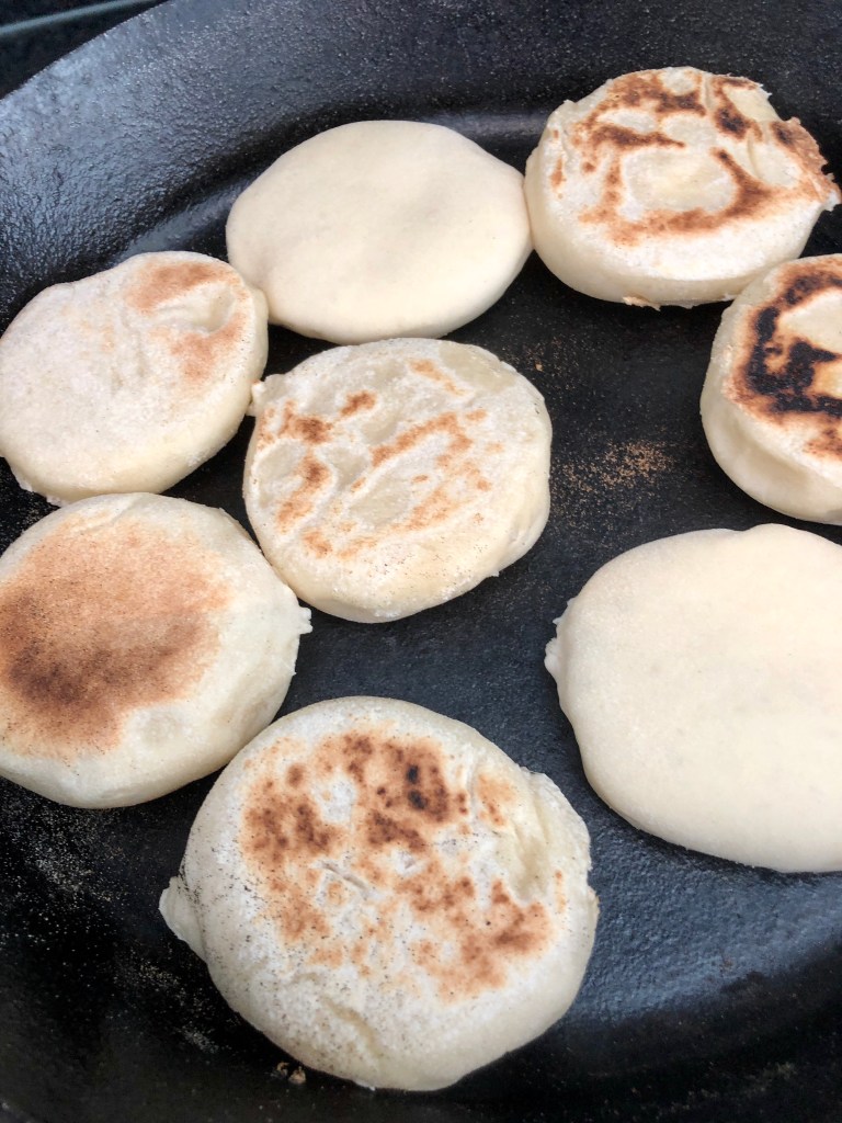 Place 5 – 6 tigelle in the pan and cook for about 3-4 minutes on one side.