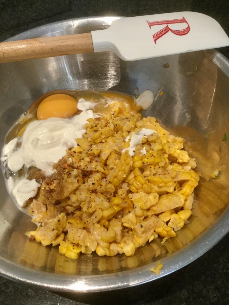 3 cooked ears of corn, grated with a knife