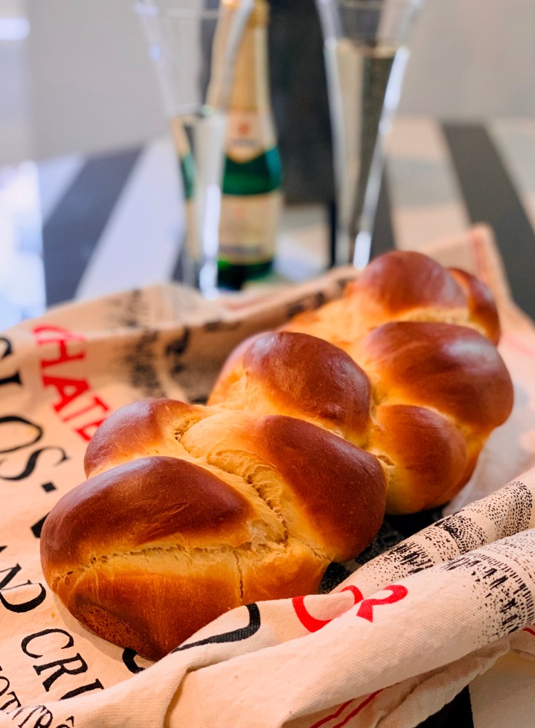 Transfer the loaf on your baking tray, brush the loaf with the egg mixture and place the smaller braided loaf on top. Cover loosely with a teal towel and let the dough rest and rise for another 1 1/2 hours.