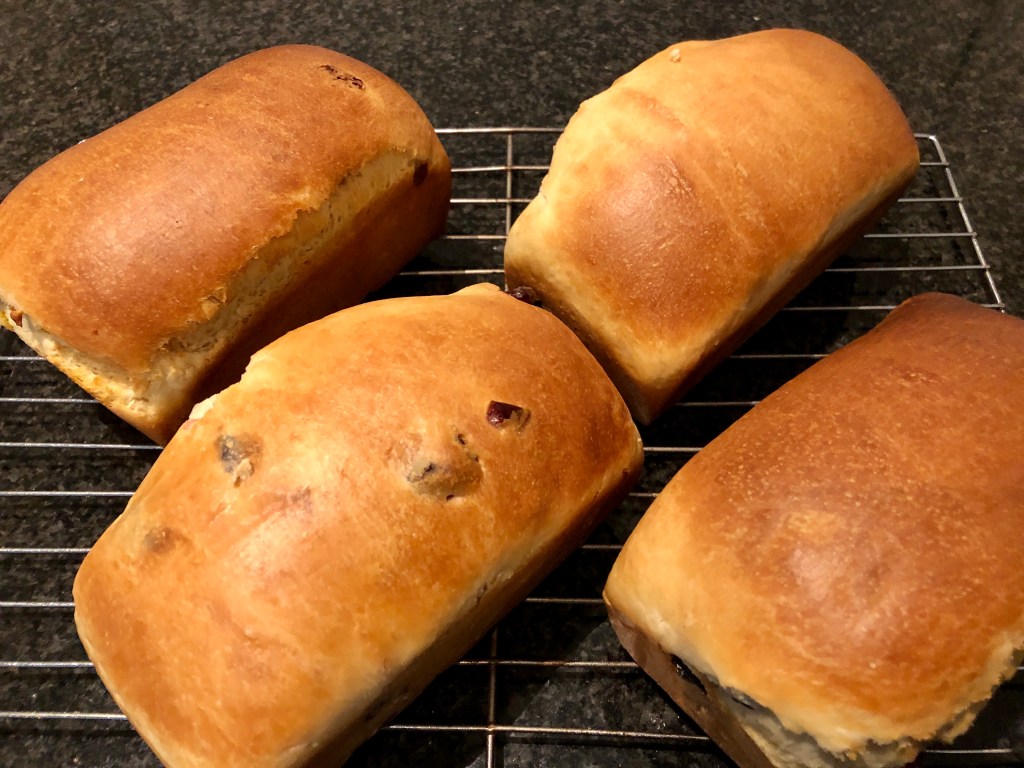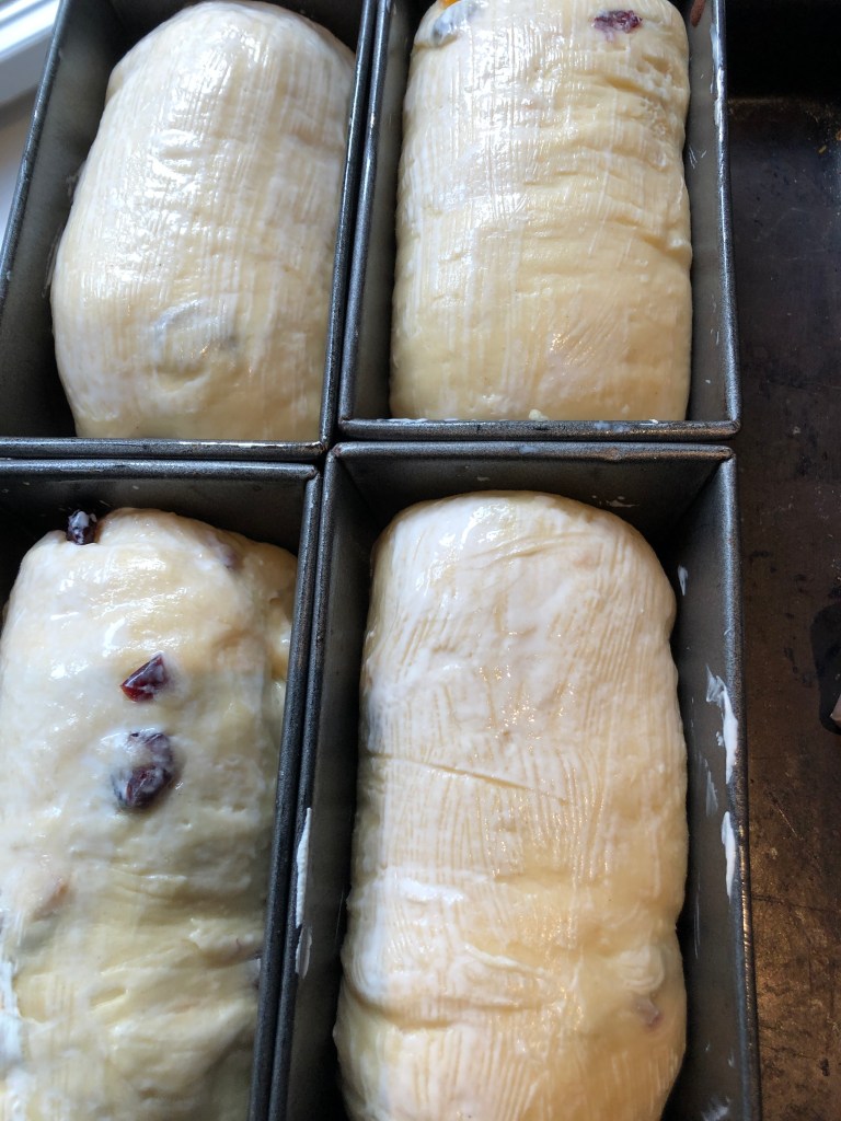 Panettone without the complexity of a sourdough and the three days process it usually requires to make those famous Christmas breads. This is a simple Brioche-like bread with just the right amount of butter and fruits that you can reheat for breakfast. I slice them in advance and freeze them in plastic bags. We simply take the amount we want for breakfast and toast them. A perfect combination with a cup of strong coffee.
