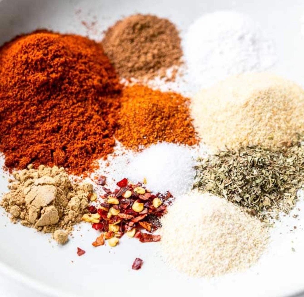 In a small bowl, combine all ingredients with the olive oil and red wine vinegar and mix well.
