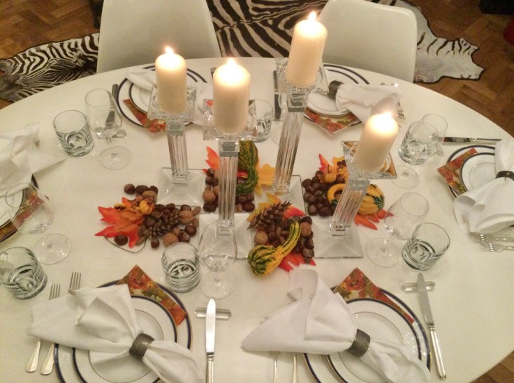 Love this time of year – when vegetables are at their best and a great variety of new ones appear at the market. It is also the time of year for root vegetables, pumpkin, squash and beautiful apples. Decorations are easy to find, simply walk through a park and pick up a few leaves, branches and chestnuts and you can make a simple, yet inviting table.
