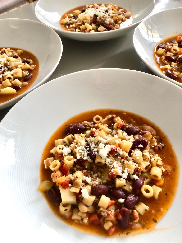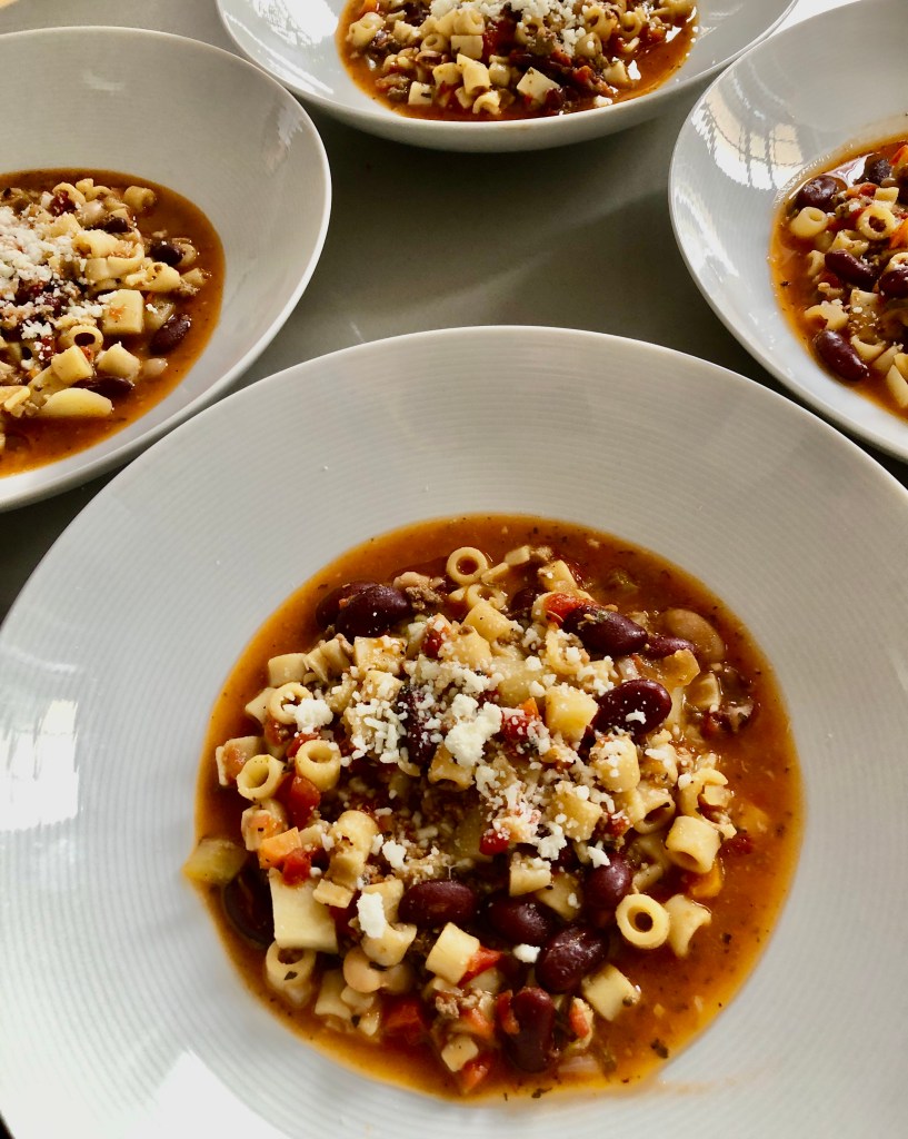 The soup freezes very well, another reason not to overcook the pasta, as it will cook again when you reheat the soup.