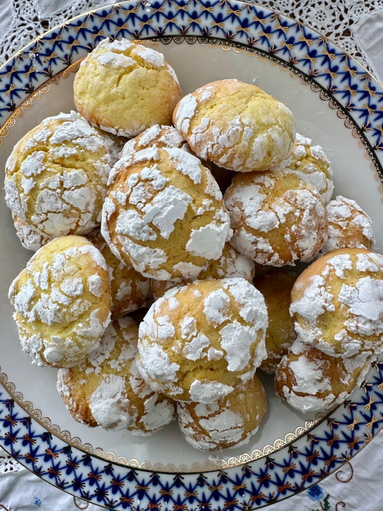 Shape the dough into small balls, then roll each one in powdered sugar to coat.